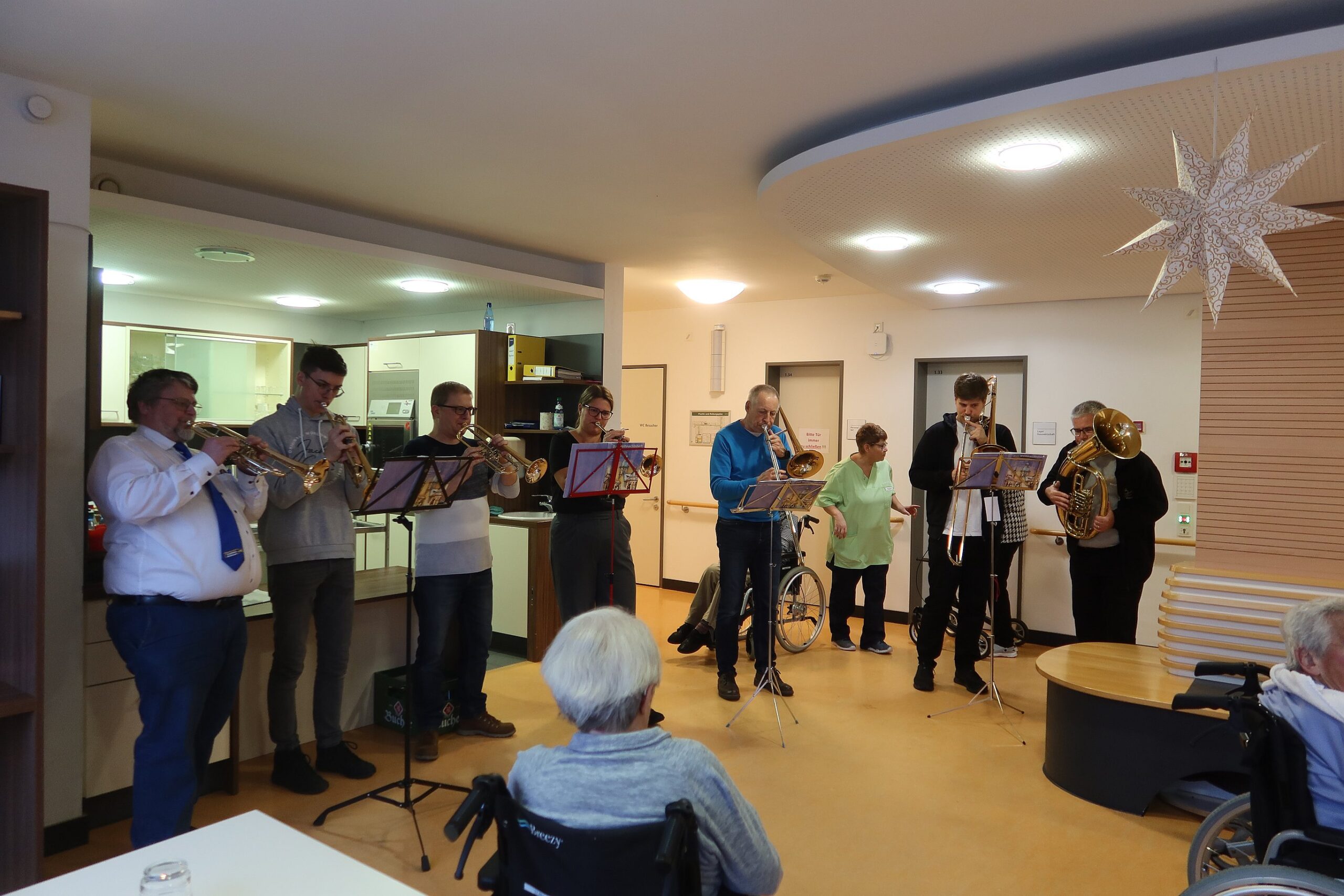 Am Heiligen Abend (24.12.2025) ging es wieder in den Samariterstift, dieses Mal zum Kurrendeblasen im Hospiz und auf allen 3 Stationen. Mit Advents- und Weihnachtsliedern brachten wir so weihnachtliche Stimmung, die nicht nur die Bewohner, sondern auch viele Besucher erfreute und zum Mitsingen animierte. Für uns ist dieses „diakonische Blasen“ ein wichtiger Teil unseres „Auftrags“, Gott zu loben und den Menschen Freude zu bringen.