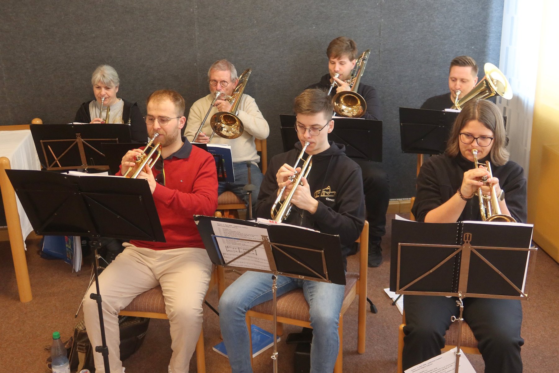 Abgesehen von den zwei Beerdigungen in den letzten Wochen hatten wir natürlich auch unser „normales“ Programm: am 22.02.26 begleiteten wir den Gottesdienst in der Versöhnungskirche in Oberkochen und spielten danach ein Ständchen zu einem ü80-Geburtstag im Samariterstift in Ebnat. Auch einen Monat später, am 22.03.26 begleiteten wir wieder einen Gottesdienst in Oberkochen. In richtig großem Chor unterstützten wir den Posaunenchor Lauchheim-Westhausen beim Benefizkonzert, u.a. zugunsten des Maja-Fischer-Hospizes in Ebnat.