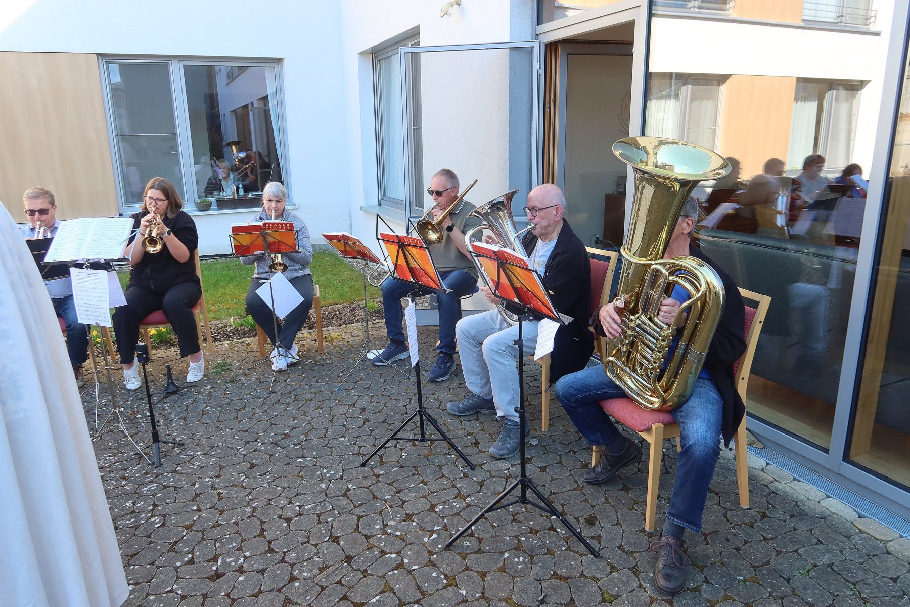 Richtig voll wurde der Terminkalender dann über Ostern: eine kleine, aber feine Besetzung begleitete die Feierstunde am Karfreitag auf dem Rodstein. Am Ostersonntag begleiteten wir zuerst die Andacht um 8:30 Uhr auf dem Friedhof in Oberkochen und anschließend den Oster-Festgottesdienst in Ebnat. Den Abschluss bildete dann wieder – wie bereits seit vielen Jahren – die Begleitung des Gottesdienstes am Dienstag nach Ostern im Samariterstift in Ebnat. Wegen des schönen Wetters in diesem Jahr sogar als „Gottesdienst im Grünen“. Jetzt gehen wir in eine kleine „Spielpause“, immerhin sind von Mitte Juni bis Mitte Juli schon wieder 5 Einsätze geplant!